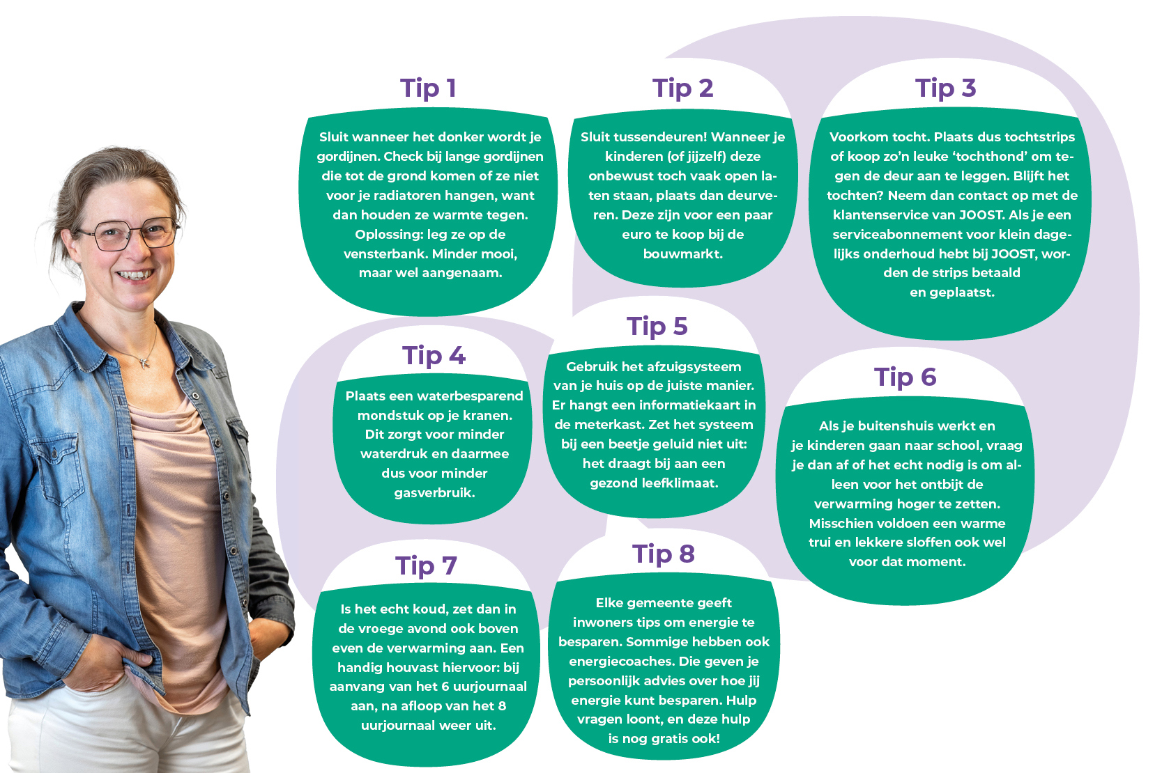 Als projectconsulent duurzaamheid adviseert Patricia de Moet huurders van JOOST over een gezond en duurzaam leefklimaat in huis. “Het is verstandig om in de herfst en winter anders met je huis om te gaan dan in zomer”, benadrukt ze. “In de zomer zetten we graag alles open om het aangename buitenleven te verbinden met binnen. Zodra het kouder en natter wordt, houden we de boel liever dicht. Begrijpelijk, maar ventileren is juist in de winter enorm belangrijk.”