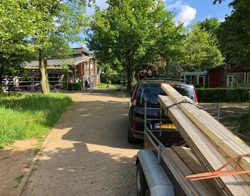 Half mei zijn er gebruikte materialen van onder andere Woonstichting JOOST naar de Voedseltuin op het terrein bij De Kleine Aarde in Boxtel gegaan. Van het gebruikte hout gaan ze een nieuwe stal maken voor opslag van materialen. Hieraan hebben we dus een mooie circulaire bijdrage aan kunnen leveren