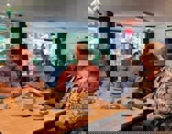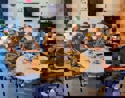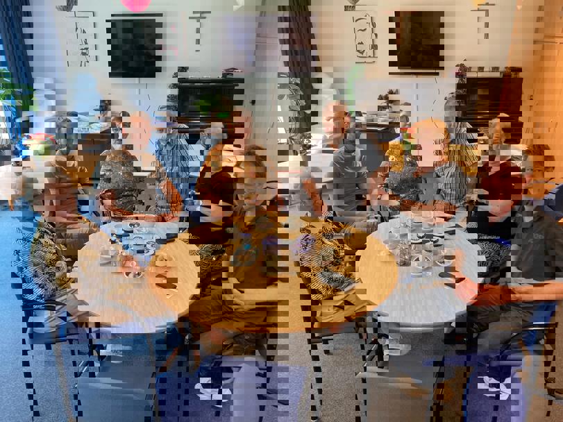 Enkele collega's op de koffie bij bewoners van Molenhof in Boxtel.