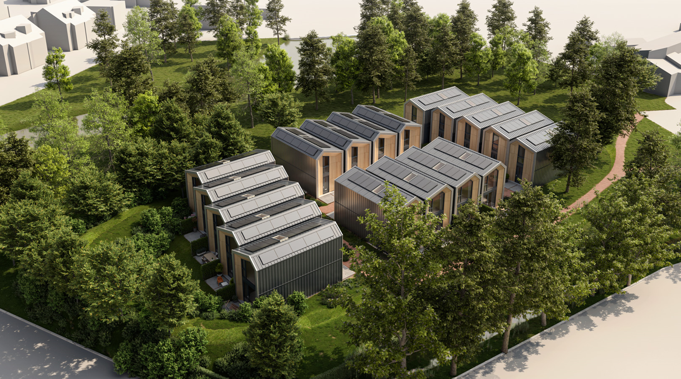 De woningen zijn in de fabriek gebouwd en klant en klaar geleverd, inclusief keuken, badkamer, installaties en zonnepanelen. Daardoor was de bouwtijd veel korter en was er veel minder bouwverkeer - en CO2-uitstoot - en waren er ook kleinere vrachtwagens nodig. Dat laatste had als voordeel dat de bouwroute via eigen terrein en deels over het terrein van De Kleine Aarde liep. Bij de aanleg van de rest van het terrein rondom de woningen, betrekken we stichting De Kleine Aarde en direct omwonenden.
