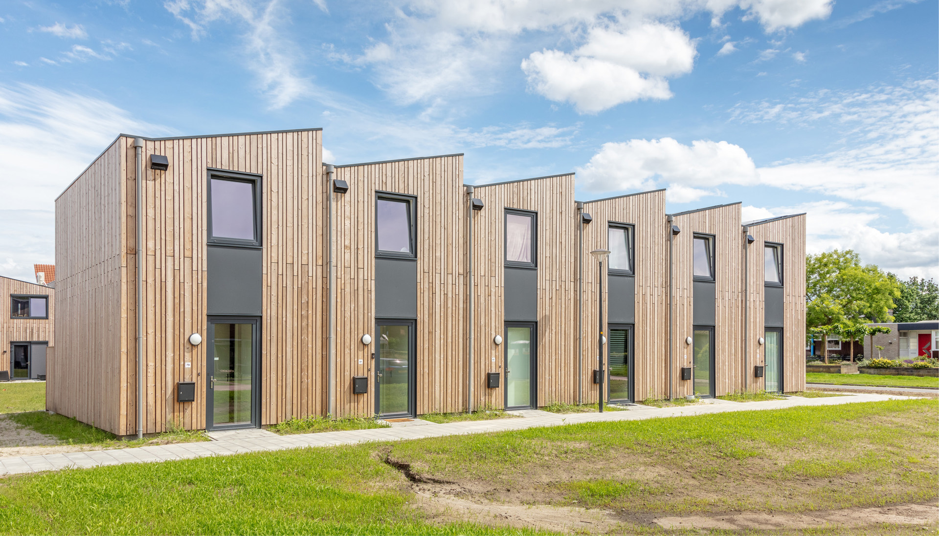 Hieronder een impressie van vergelijkbare flexwoningen die we op deze locatie willen realiseren. Tekst loopt verder onder de afbeelding.