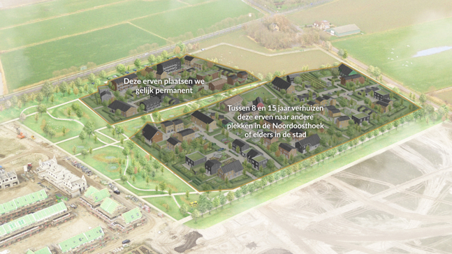 - De 80 woningen van fase drie, geleden aan de noordelijke erven, blijven permanent staan.