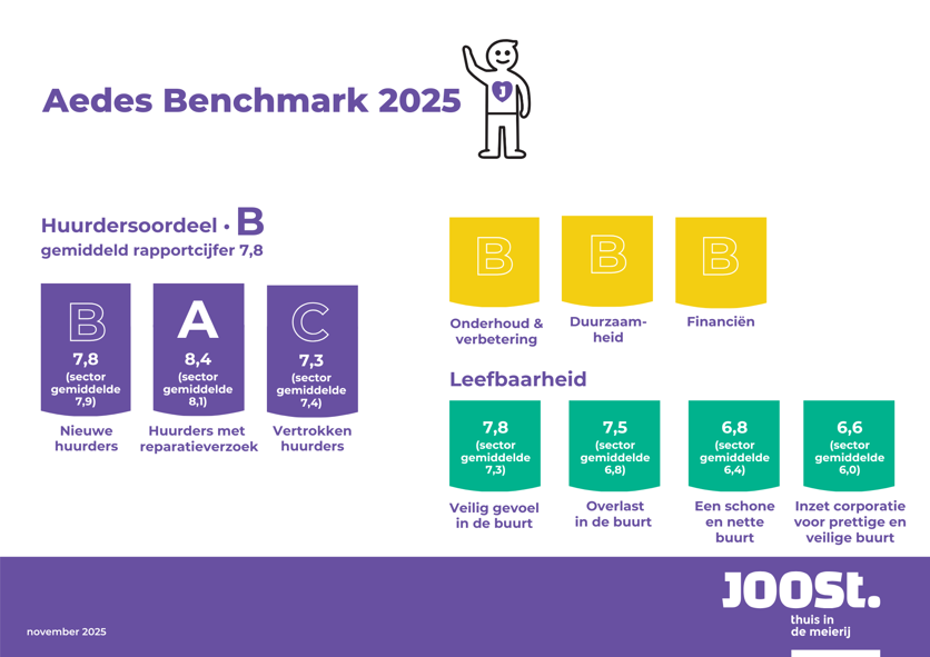 Op 20 november 2025 zijn de resultaten van de Aedes-benchmark 2025 gepubliceerd. De cijfers zijn gebaseerd op de resultaten over de periode september 2024 tot en met juli 2025.