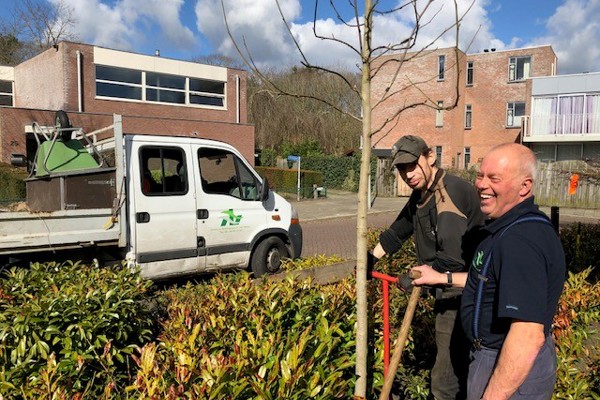 Samen met onze partners Weener XL en Groen en Reïntegratie A. van Weert planten we vandaag maar liefst 35 bloeiende bomen op verschillende plekken in ons werkgebied. Bloeiende bomen zijn goed voor bijen, vlinders en vogels. En dus voor de biodiversiteit. Meer groen zorgt daarnaast ook voor schonere lucht, minder kans op wateroverlast, minder geluidshinder, verkoeling in de zomer en het draagt bij aan de leefbaarheid in de wijk. Heel veel voordelen dus!