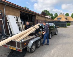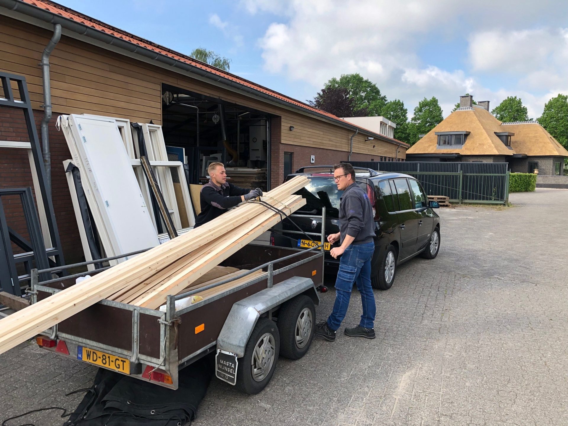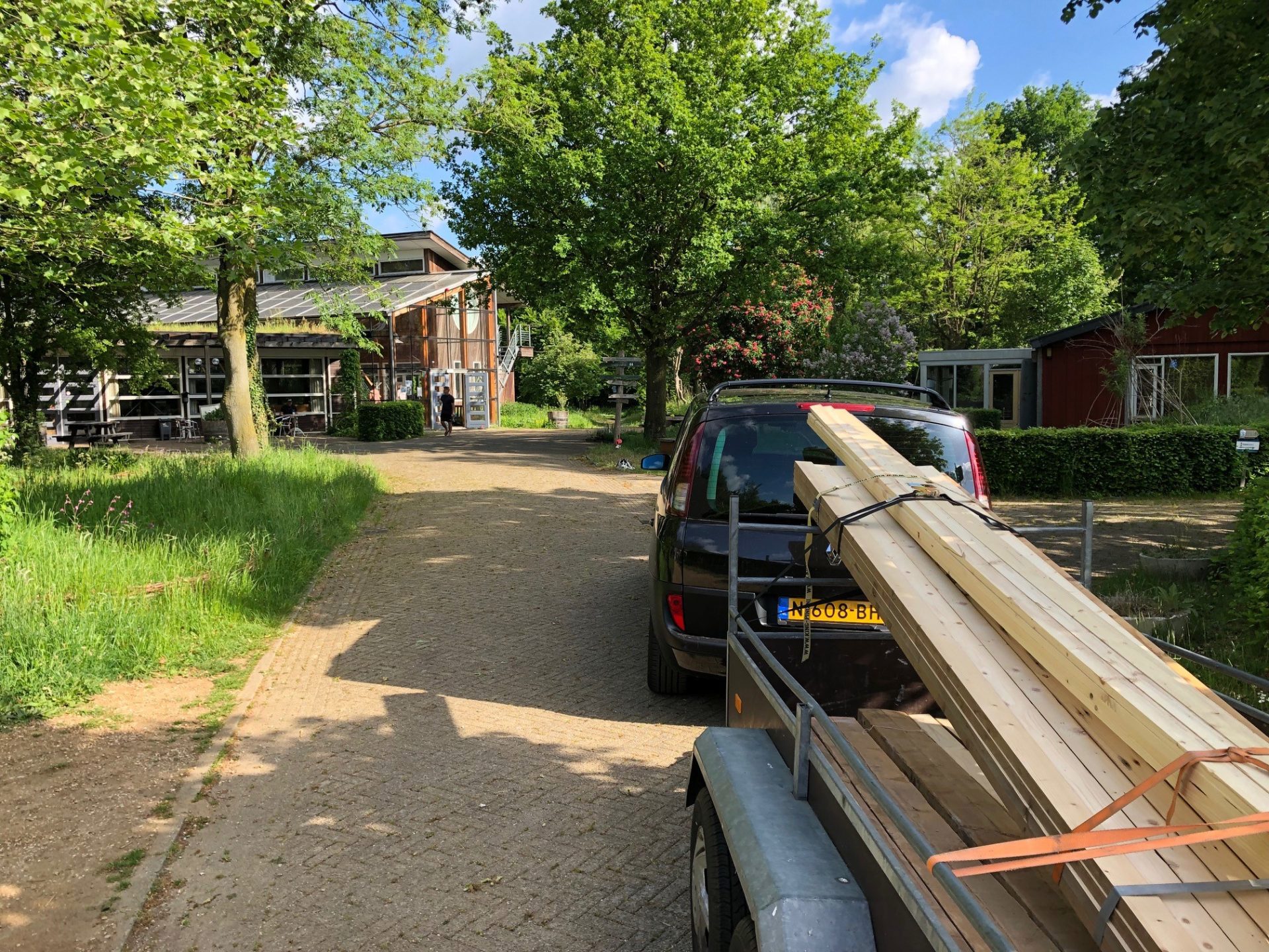 Half mei zijn er gebruikte materialen van onder andere Woonstichting JOOST naar de Voedseltuin op het terrein bij De Kleine Aarde in Boxtel gegaan. Van het gebruikte hout gaan ze een nieuwe stal maken voor opslag van materialen. Hieraan hebben we dus een mooie circulaire bijdrage aan kunnen leveren