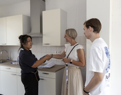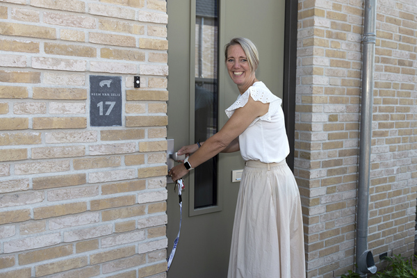 Daarna kregen de 1e bewoners de sleutels uitgereikt. Hanneke van Rakt verhuist met haar kinderen vanuit Vlijmen naar Boxtel. Haar zoon was er bij voor het officiële moment. Ze vertelt: “Het mooie van nieuwbouw is dat iedereen hier opnieuw begint. Ik verwacht dan ook snel nieuwe mensen te leren kennen.” Ze is erg blij met haar hoekwoning. “We spelen allemaal piano en dan is het wel fijn om wat vrijer te zitten.” Samen met onze woonmakelaar en opzichter liep ze een ronde door haar woning en kreeg ze uitgebreid uitleg over alle technische installaties. Daarna bracht ze meteen de eerste klus- en schoonmaakspullen naar binnen. Lachend: “We kunnen nu los! Begin juli willen we al overhuizen, dus we pakken meteen door.”