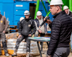 Directeur Carl Dolmans van Hendriks Coppelmans was ook blij dat nu al het hoogste punt is bereikt. "Want wat heeft het afgelopen maanden al veel geregend. Vooral toen we nog in de grond zaten. Maar de oplevering is in zicht!"