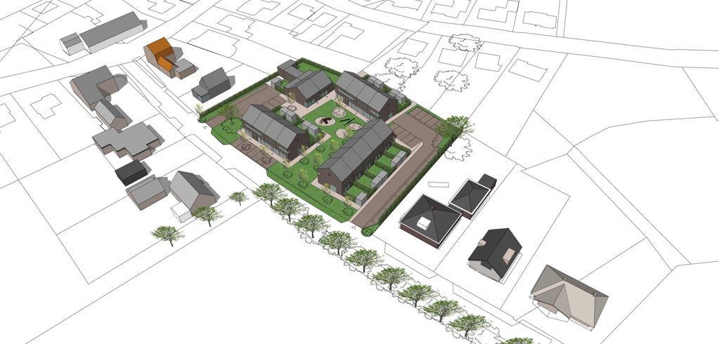 Bij de eerste schetsen die er nu liggen, is het plan om de woningen in een hofje te bouwen rondom een groen erf. Op het binnenterrein is er dan ruimte voor een speeltuintje en groen. Het parkeren willen we graag zo min mogelijk aan de straatzijde en uit het zicht.