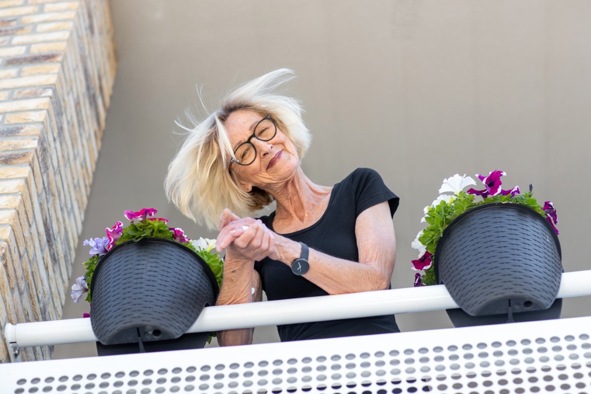Vanaf haar balkon kijkt ze zo op de drukke Bosscheweg. En rondom het gebouw is het ook één en al leven, met al die bewoners van de andere nieuwe Heem van Selis-woningen en de GAMMA en de Intratuin om de hoek. “Volgens mij heb ik hier al vaker buiten gezeten dan in mijn ‘oude’ tuin”, lacht ze. Die tuin hoorde bij haar eengezinswoning in Boxtel Oost waar ze lang met haar echtgenoot Willy woonde. “Hij overleed acht jaar geleden. Toen werd het huis echt te groot. Vandaar die zoektocht naar wat kleiners.”