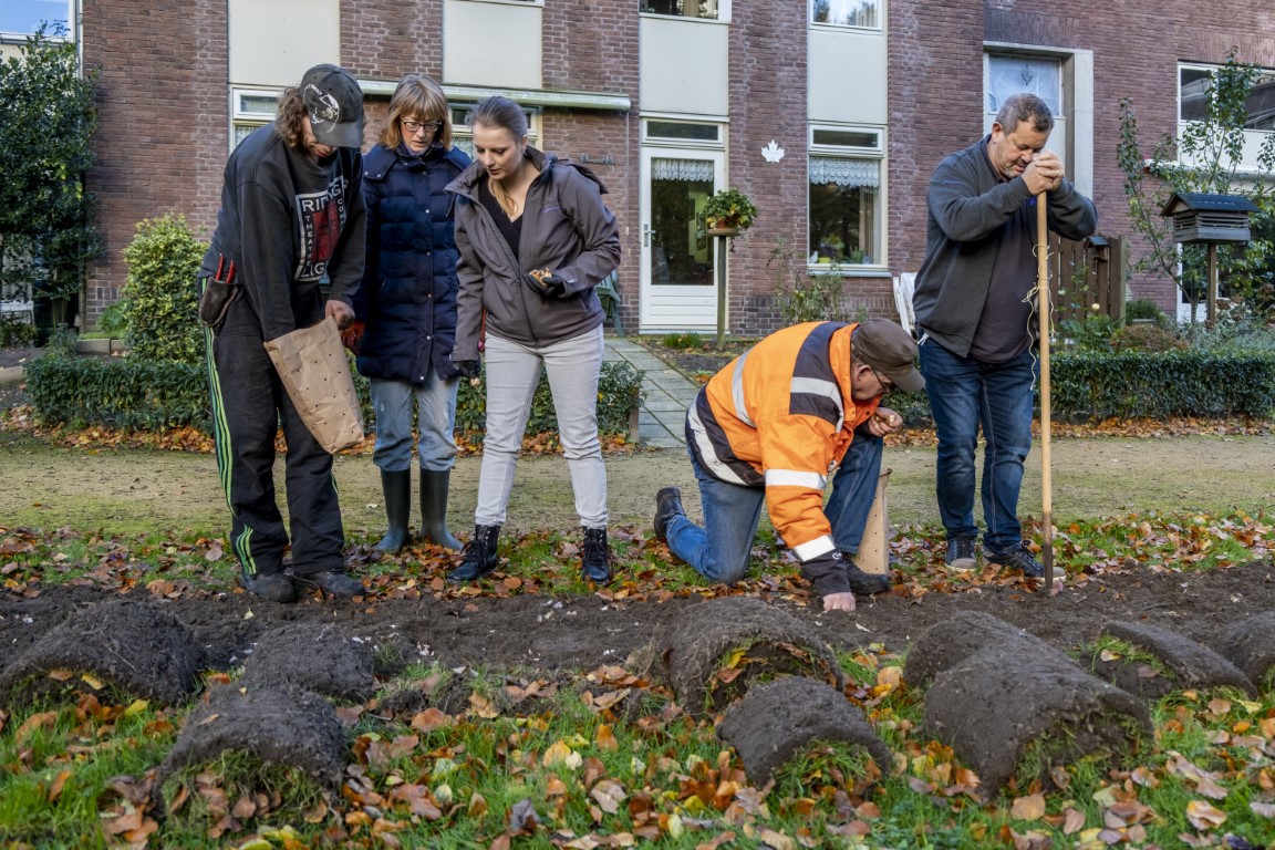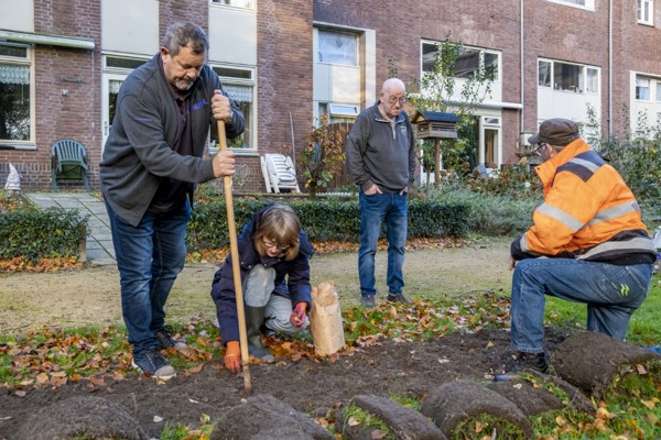 Woensdag 26 oktober hebben we samen met bewoners op Stapelen en Ten Breukelen en medewerkers van groen- en reïntegratiebedrijf Van Weert ruim 2000 biobloembollen geplant. De bloembollen zijn geschonken vanuit een gezamenlijk inkoopproject van Vereniging voor ecologisch leven, koken en tuinieren (Velt) en de provincie Noord Brabant.