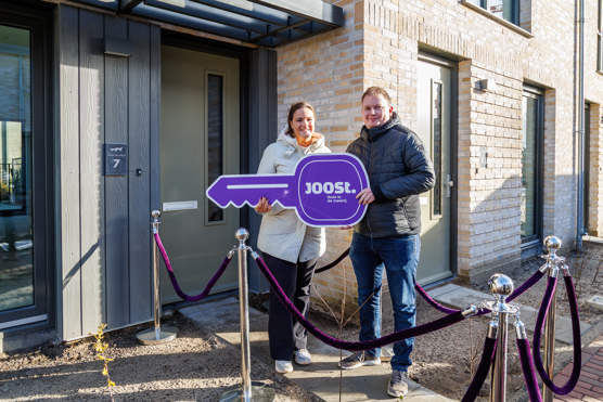 In december 2023 werden de eerste woningen opgeleverd. Ralph Brouwer kreeg toen als 1e bewoner de sleutels overhandigd van onze collega woonmakelaar Lieke van der Veen. Zie foto hieronder.