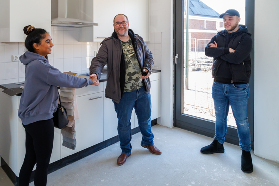 Eind februari 2024 werd het tweede deel opgeleverd. Koen en Leatitia Beekwilder kregen toen de sleutels van onze woonmakelaar Andrej Verhoeks. Zie foto hieronder.